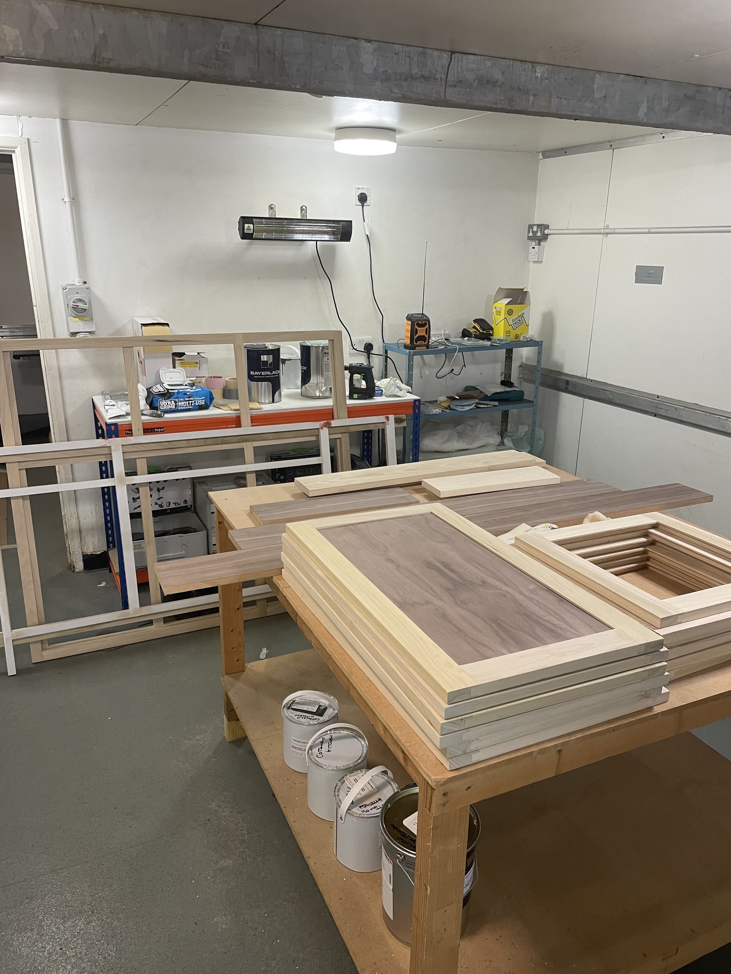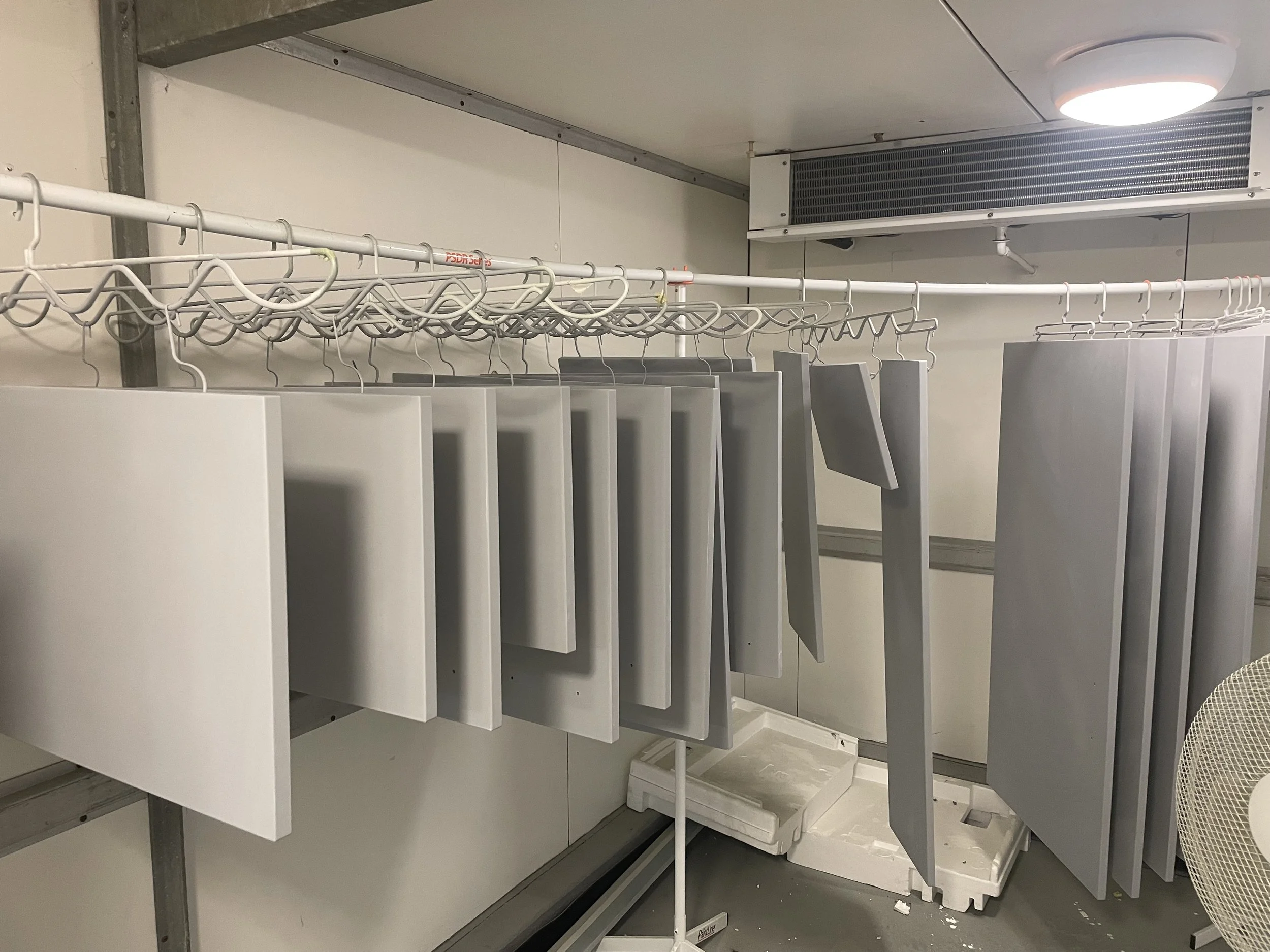 All of the removable components from your kitchen such as doors, draws, kick boards and pelmets are collected and resprayed to a factory finish in our workshop.